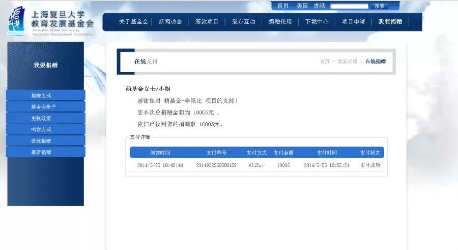 为了使得财务更加透明公开,萌基金财务部工作人员不辞辛苦,在活动当天就抓紧计算并清点了当天收到的捐助,并反复核对,最终确认当天共募得善款10,005元人民币。紧接着,财务人员立即通过复旦大学教育发展基金会官方的在线捐助平台,将善款全额存入了基金会的账户。