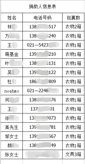 以下为部分捐助人信息。(为保护捐助人,对姓名、电话等信息予以保密)