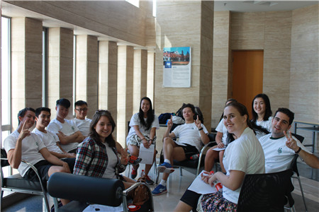 下午1点30分左右,港大-复旦IMBA项目2014级的高路捷同学带着浩浩荡荡的队伍,非常整齐有序地来到了经济学院的教室,同学们都很严肃认真。