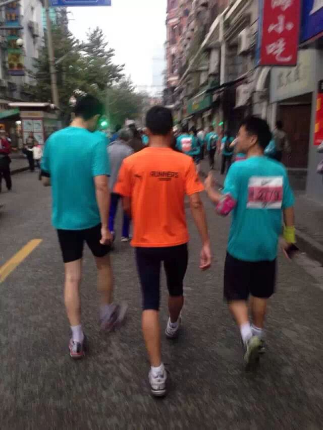7点整,随着一声枪响,斗士们纷纷踏过起点朝终点大步迈进。尽管最后因为拥挤,加之几位伙伴到达较晚,以致彼此之间有些散开,但是大家勇朝一个方向,拨开人流,迎头追赶到终点。其中萌基金成员陈雍雷更是只睡了3.5小时便一大早奔赴战场,并忍受着大脚趾趾甲翻开的折磨,无间断地进行了5公里陪跑,并率先抵达终点。随后,洪娜、张安、林金哲等相继抵达终点,并仿佛意犹未尽,展现出良好的身体素质和精神面貌!