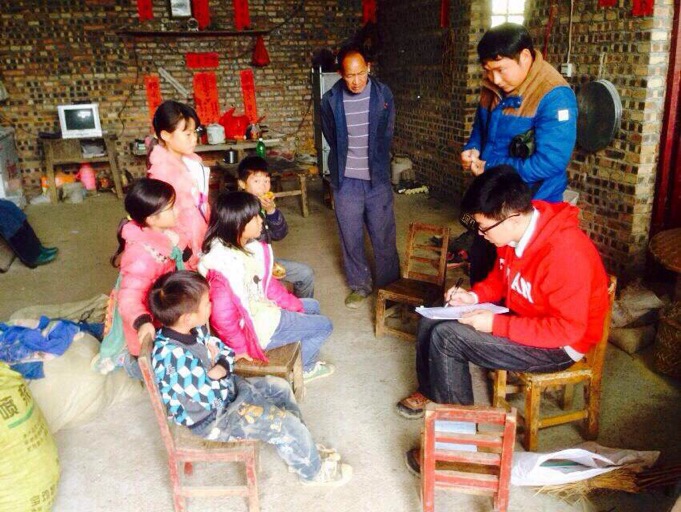 我们四名队员由校长和老师带队分为两个小组共走访了15户家庭贫困但好学的学生家庭